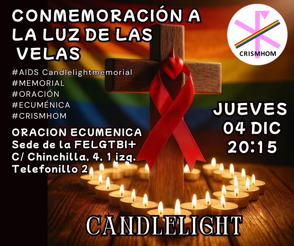 | Oración comunitaria ecuménica 20:30 Oración comunitaria ecuménica @ FELGTBI+ Dic 4 a las 20:30 – 21:30 ![]() Todos los jueves a las 20:30h la comunidad de CRISMHOM se encuentra para celebrar una oración comunitaria de carácter ecuménico, abierta a todas las personas, tanto LGTBI como heterosexuales, que deseen tener un encuentro con el Señor. Esta oración combina cantos, salmos, lecturas bíblicas, peticiones, acciones de gracias y textos que ayuden a la reflexión y ... | AMIGO QUE ESCUCHA, si necesitas hablar ahora alguien te escucha 19:00 AMIGO QUE ESCUCHA, si necesitas hablar ahora alguien te escucha @ Palacio Annette Cabelli Dic 5 a las 19:00 – 21:00 ![]() ¡Estás en tu casa! El Amigo que Escucha es un servicio público de escucha y apoyo a creyentes LGTBI, además de estar abierto a todo el que lo necesite. Está orientado a personas que precisen hablar de su fe y de su realidad sexual o de género. No obstante, también atiende a los ámbitos familiar, ... | |||||