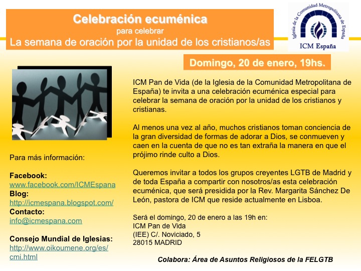 Un grupo de CRISMHOM ha quedado el domingo 20 de enero de 2013 a las 16:45h en la esquina entre San Bernardo y Noviciado para asistir a esta celebración. ¡¡¡Anímate y únete!!!