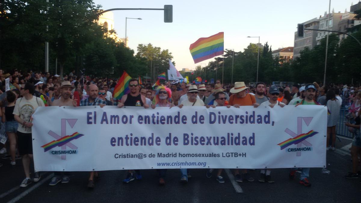 CRISMHOM se une a la Manifestación del Orgullo LGTB con el lema «EL AMOR ENTIENDE DE DIVERSIDAD, ENTIENDE DE BISEXUALIDAD«, para hacer visible la realidad del amor de las personas cristianas LGTB y este año especialmente bisexuales. Quedamos en la sede de CRISMHOM (Barbieri 18) a las 17h, para salir a las 17:30h hacia la calle Claudio Moyano junto a la glorieta de Atocha donde se van situando las diferentes pancartas de los grupos. La manifestación saldrá a las 18:30h de Atocha hacia la plaza de Colón. El lema de la manifestación del orgullo es «Leyes por la igualdad real ya. Año de la visibilidad bisexual en la diversidad«.