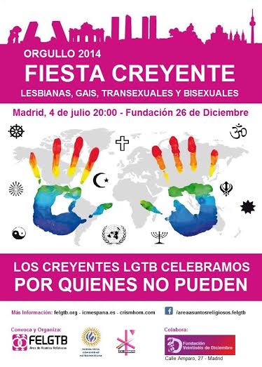 L@S miembros y simpatizantes del Área de Asuntos Religiosos de la FELGTB nos llenamos de «Orgullo» en una FIESTA CREYENTE el viernes 4 de julio en los locales de la Fundación 26 de Diciembre. Quisimos unirnos tod@S los que compartimos o respetamos la dimensión espiritual de las personas LGTB+H. Celebramos este aspecto del ser humano que nos ayuda a trascender las dificultades y a trabajar por la Justicia.